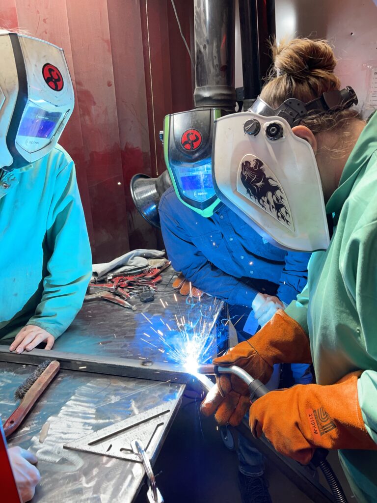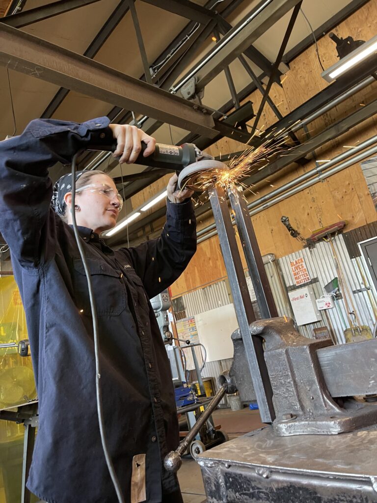 Our Workforce Welding Program is a paid 32-hour, week-long job-readiness program. Each session is Monday through Friday, 10 AM – 4:30 PM. During the training, you’ll learn industry safety standards and use metalworking tools such as the MIG Welder, oxy-acetylene torch, plasma cutter, chop saw, band saw, and angle grinder. These skills will be applied to a functional public art project that will be installed in the local community. This program does not lead to certification.