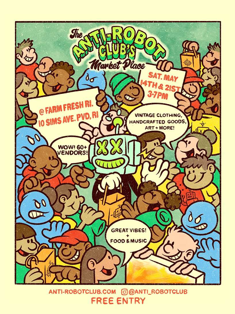 AM: One of your creations is the ANTI ROBOT CLUB, which most people have almost definitely seen or heard of, in passing at the very least. What was the inspiration behind ANTI ROBOT CLUB? Do you see any parallels between the ethos of ARC and that of the Steel Yard?