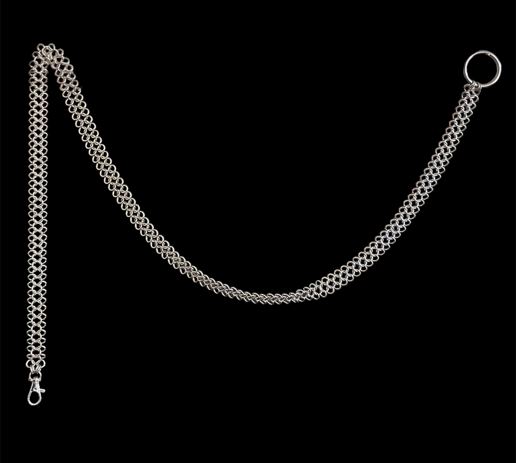 Chain weaving is an ages-old craft that began as a way to build flexible, protective armor. Today it lives on in jewelry making, where hundreds of small metal stainless steel rings are linked together by hand to create intricate, durable patterns.