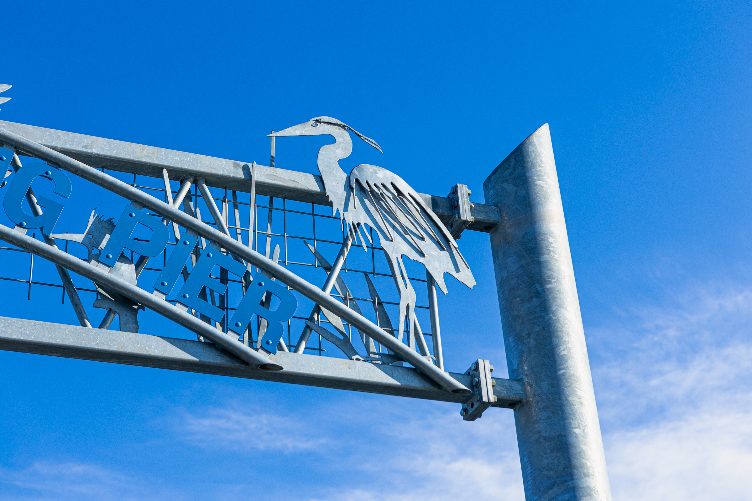 The Steel Yard worked with RI DEM in order to design, fabricate and install a custom archway for the Rocky Point State Park fishing pier. Designers Anna Snyder and Kendra Plumley continued the motifs from the fence and amenities that we created for this space two years ago. The archway honors RI DEM’s Larry Mouradjian and the many birds that can be seen from the pier.
